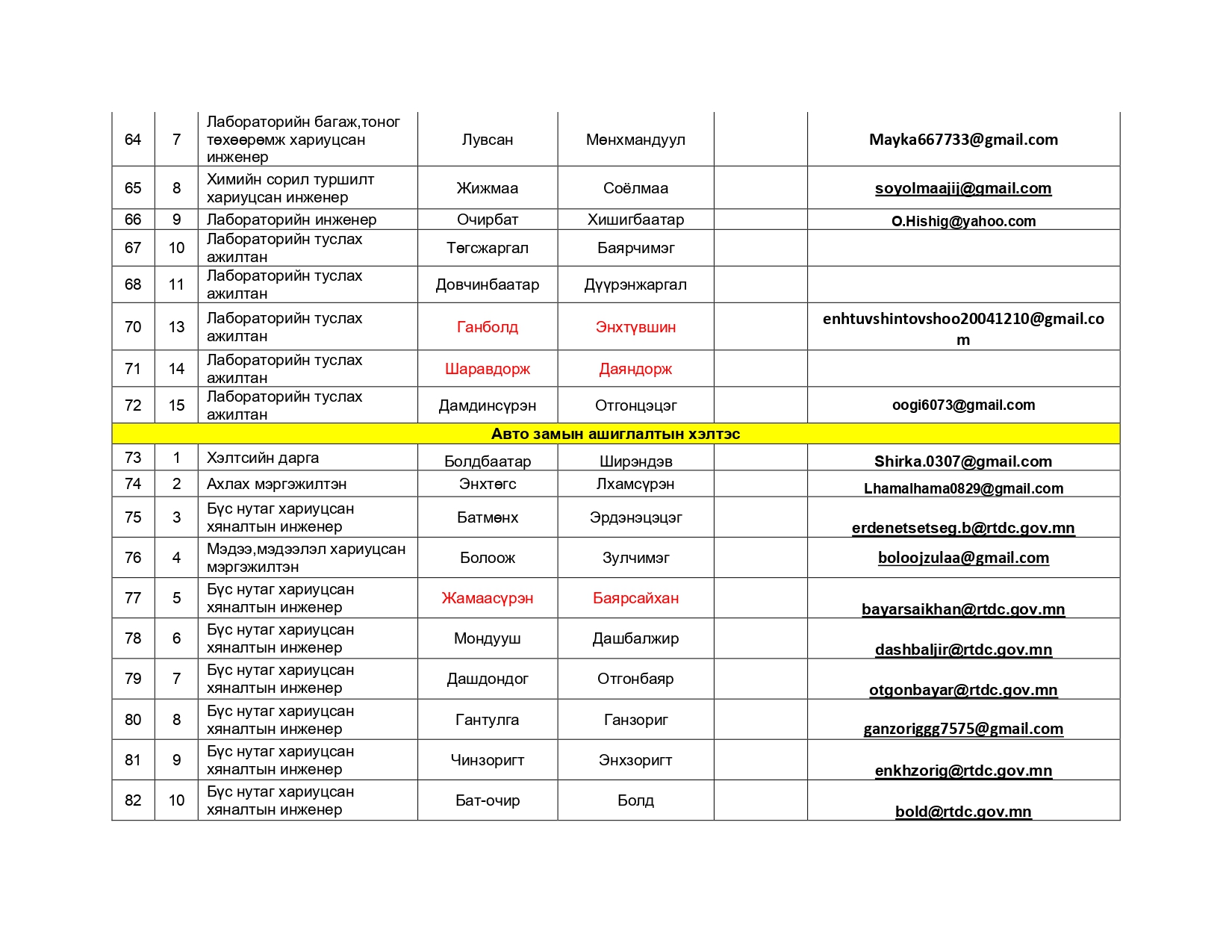 Авто замын төв лабораторийн туршилт, шинжилгээ хийх ажлын жишиг тариф, дансны мэдээлэл