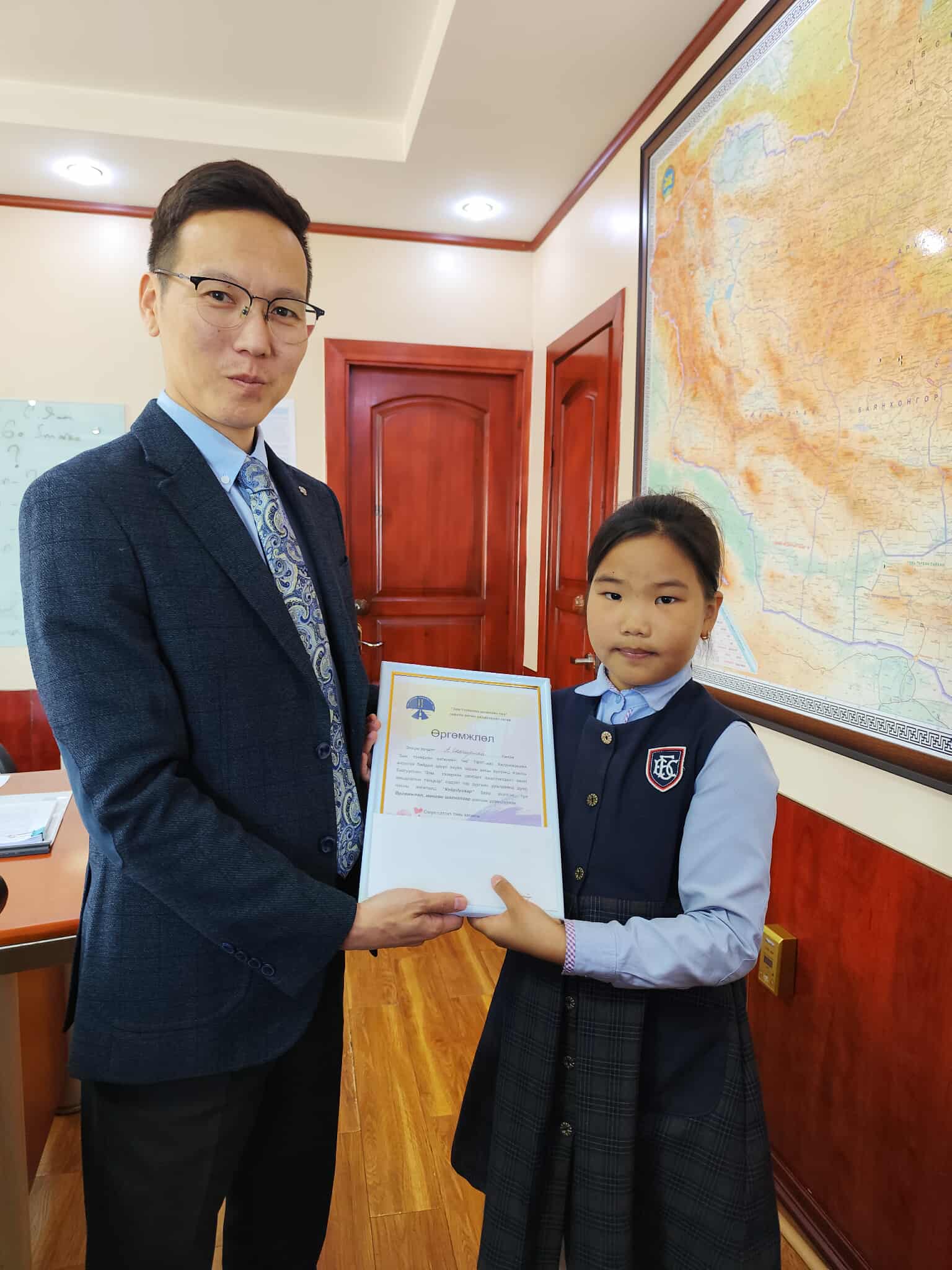 1-р байр: Бат-Эрдэнийн Алтанзул / Дорнод аймгийн “Шинэ хөгжил” цогцолбор сургуулийн 10б ангийн сурагч/