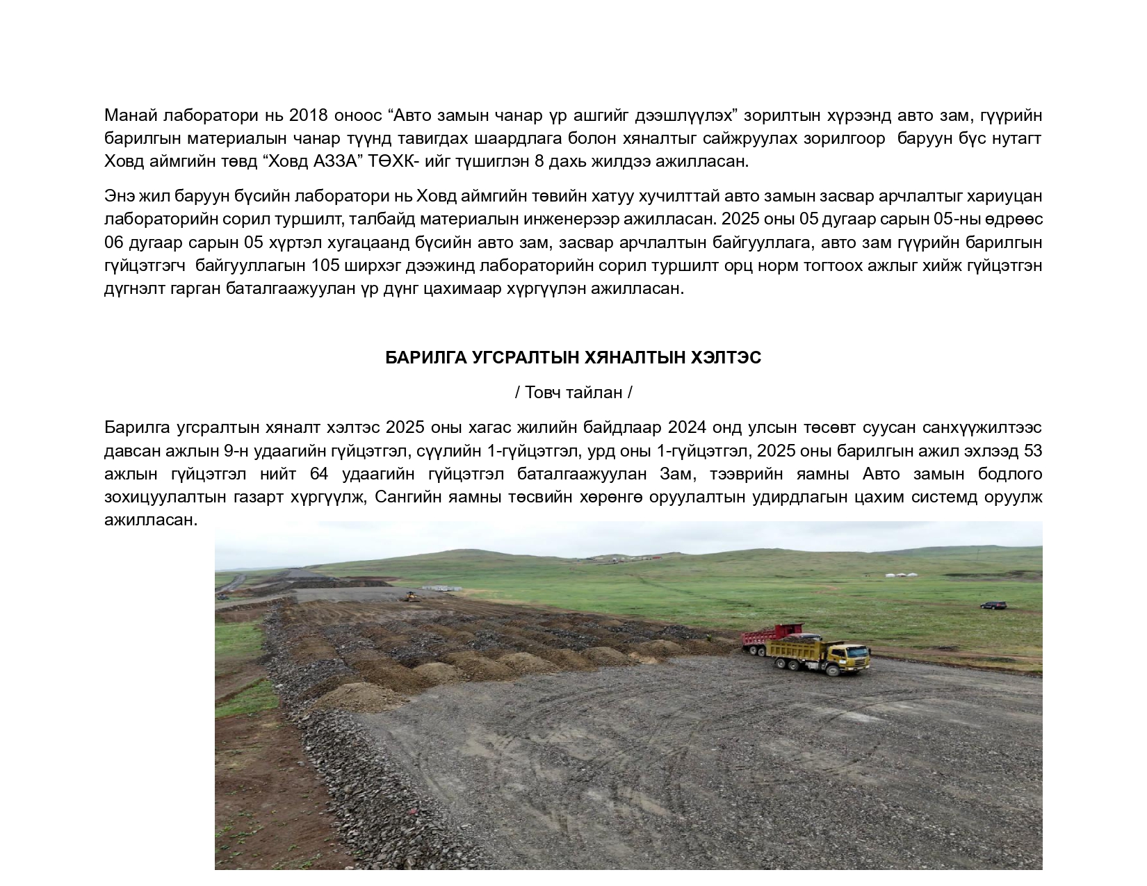 Авто замын төв лабораторийн туршилт, шинжилгээ хийх ажлын жишиг тариф, дансны мэдээлэл
