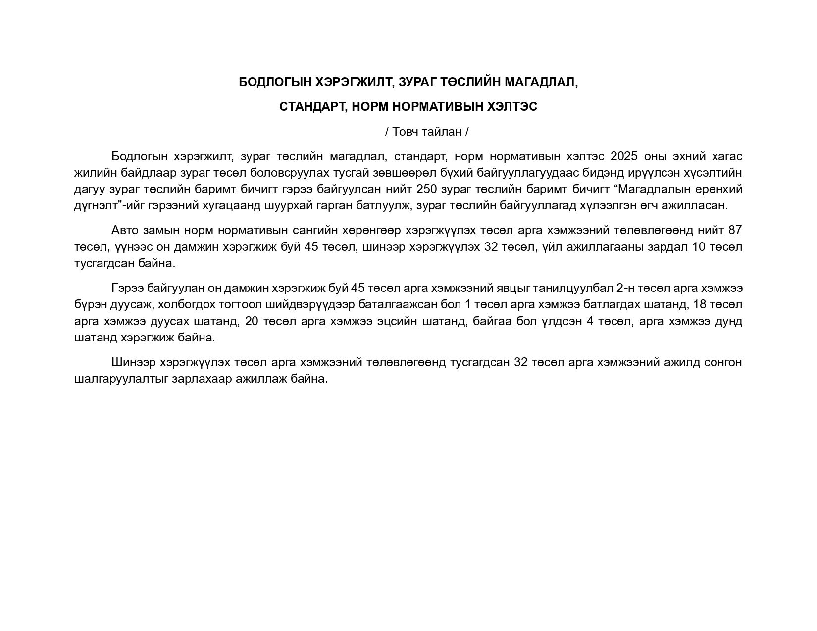 2025 ОНЫ ЭДИЙН ЗАСГИЙН ҮНДСЭН ҮЗҮҮЛЭЛТ, ЗОРИЛТОТ ТҮВШИНГИЙН ТОДОТГОЛ