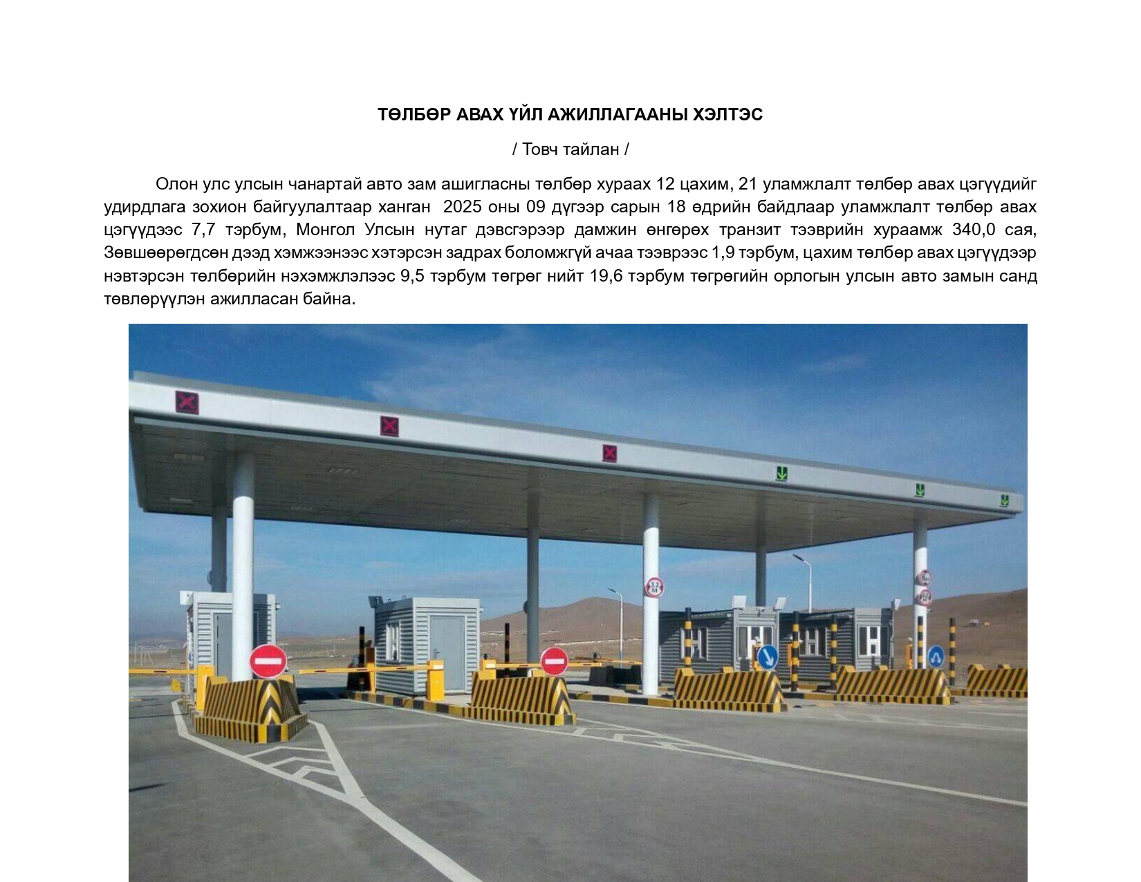 Авто замын бэлэн байдлын мэдээ